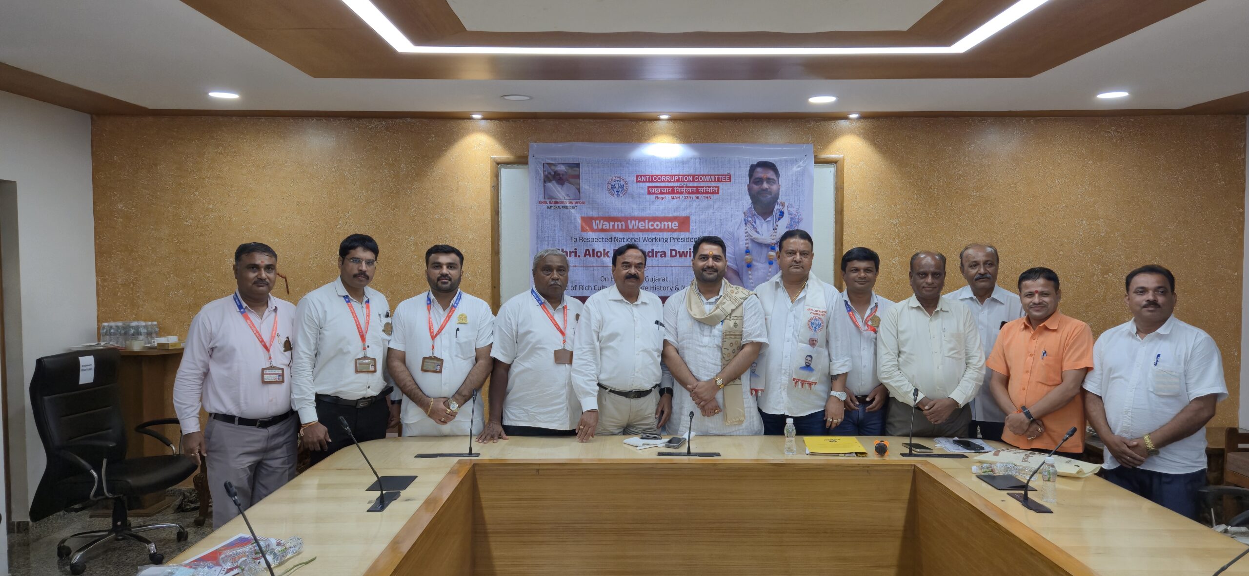 આજરોજ તારીખ ૨૨/૭/૨૫ ના રોજ ભ્રષ્ટાચાર હટાઓ, દેશ બચાઓ ના અભિયાન અંતર્ગત એન્ટીકરપ્સન કમિટિ alias ભ્રષ્ટાચાર નિર્મુલન સમિતી દ્વારા આયોજીત કાર્યક્રમ માં લોકલાડીલા રાષ્ટ્રીય કાર્યકારી અધ્યક્ષ શ્રી આલોક રબિન્દ્ર દ્વિવેદીજી ગુજરાત પ્રદેશ ના પ્રવાસે પધારેલ હતા, ભ્રષ્ટાચાર નિર્મુલન સમિતી દ્વારા આયોજીત કાર્યક્રમ માં ગુજરાત રાજ્યપાલ શ્રી, મુખ્યમંત્રી શ્રી, ગૃહમંત્રી શ્રી, ચીફ સેક્રેટરી શ્રી, એડ. સેક્રેટરી ગૃહ વિભાગ, પોલીસ મહાનિદેશક શ્રી, ચીફ એસીબી ગુજરાત શ્રી, ના કાર્યાલય માં મેમોરેન્ડમ આપ્યા અને ત્યારબાદ સાંજે ૪ વાગે એનેક્ષી સરકીટ હાઉસ શાહીબાગ, અમદાવાદ ખાતે સભ્યો સાથેની સદ્દભાવના બેઠક માં અમદાવાદ ખાતે રાષ્ટ્રીય પદાધિકારીઓ અને ગુજરાત પ્રદેશ ના પદાધિકારીઓ ઊર્મિલ શાહ જી રાષ્ટ્રીય જનસંપર્ક અધિકારી, ભરત પટેલ જી રાષ્ટ્રીય ડે. વીજી, મહેશ પ્રજાપતિ જી રાષ્ટ્રીય ઉપપ્રમુખ, મુકેશ ખત્રી જી પ્રદેશ અધ્યક્ષ, જપન પંચાલ જી વિજિલન્સ ઓફિસર ગુજરાત અને હાર્દિકભાઈ, નરશીહભાઈ, ભરતભાઈ, રાધેભાઈ સાથે અન્ય મોટી સંખ્યામાં સભ્યો હાજર રહ્યા હતા.